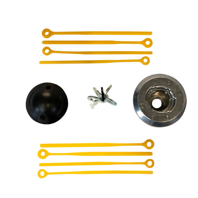 Kompletny zestaw montażowy — głowica oraz cztery żyłki pasują do większości kos i podkaszarek dostępnych na rynku, dzięki czemu możesz szybko wymienić zużyte elementy.