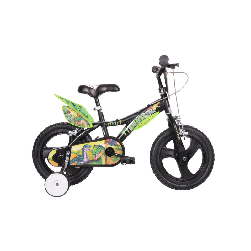 Rower DINOZAURY 14” został zaprojektowany z myślą o dzieciach, które opanowały już podstawy jazdy i szukają nowych wyzwań. Stalowa rama i widelec zapewniają trwałość oraz stabilność, a pompowane opony 14”x1.75 gwarantują doskonałą przyczepność i komfort nawet na nierównym terenie. Podwójne hamulce szczękowe – z przodu i z tyłu – pozwalają na pełną kontrolę i bezpieczeństwo w każdej sytuacji. Dodatkowo boczne kółka wspomagają naukę jazdy, a waga około 8 kg sprawia, że rower jest solidny, ale nadal lekki i poręczny.