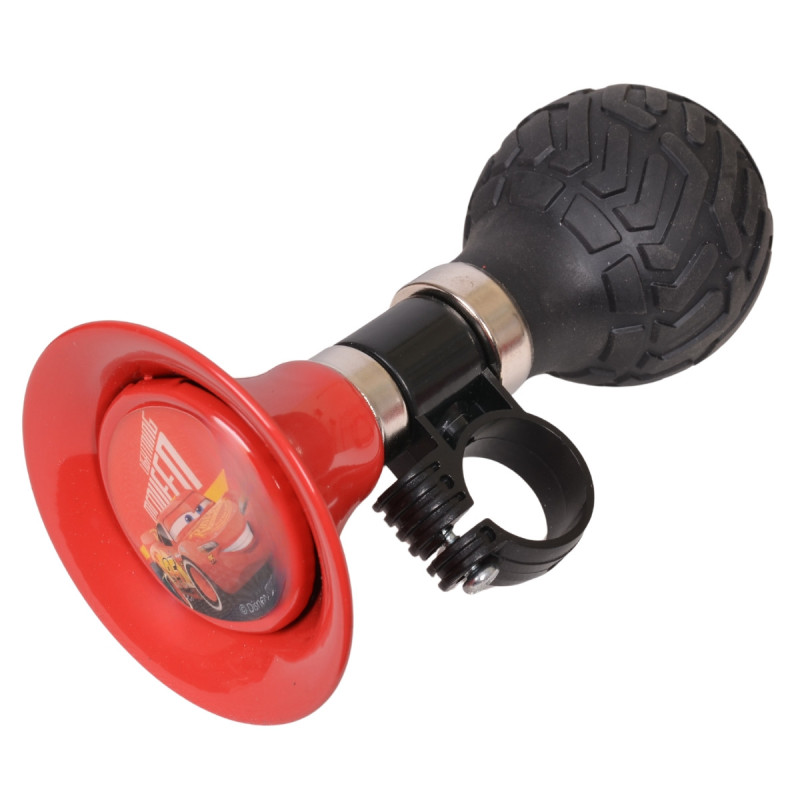 Trąbka rowerowa CARS w czerwono-czarnym kolorze. Łatwy montaż na kierownicy, wyrazisty motyw z bajki „Auta” i głośny sygnał dla bezpiecznej jazdy.