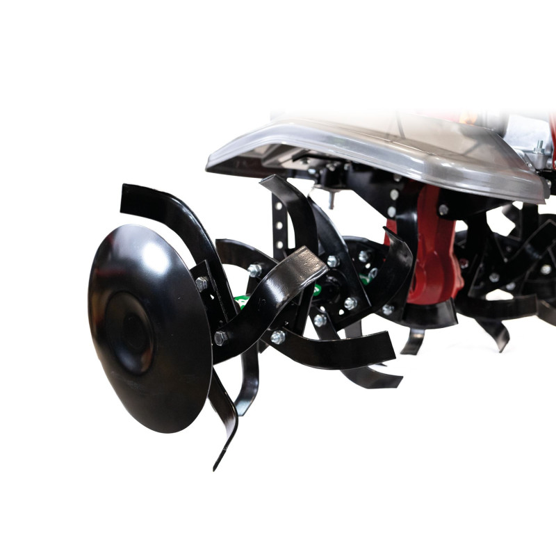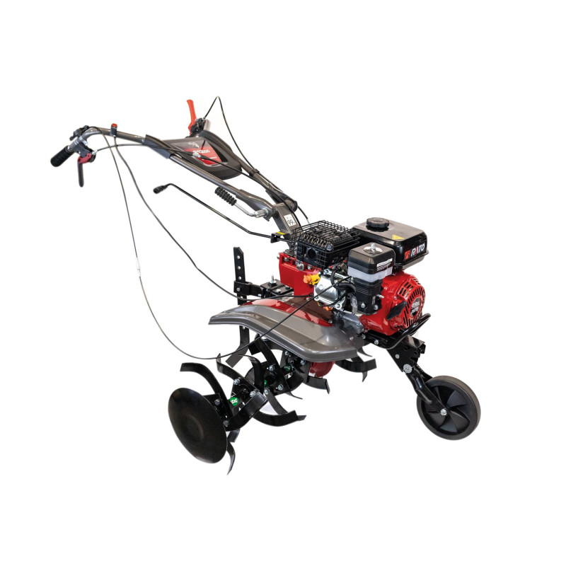 Ta glebogryzarka jest wyposażona w silnik benzynowy Rato R210 o pojemności 212 cm3, który może dostarczyć 4,4 kW mocy przy 3600 obr./min, zapewniając efektywną pracę nawet na twardych glebach. Układ przeniesienia napędu Pinion Crown Prof zapewnia większą precyzję i zmniejsza rozproszenie energii w porównaniu z modelami z przekładnią pasową.