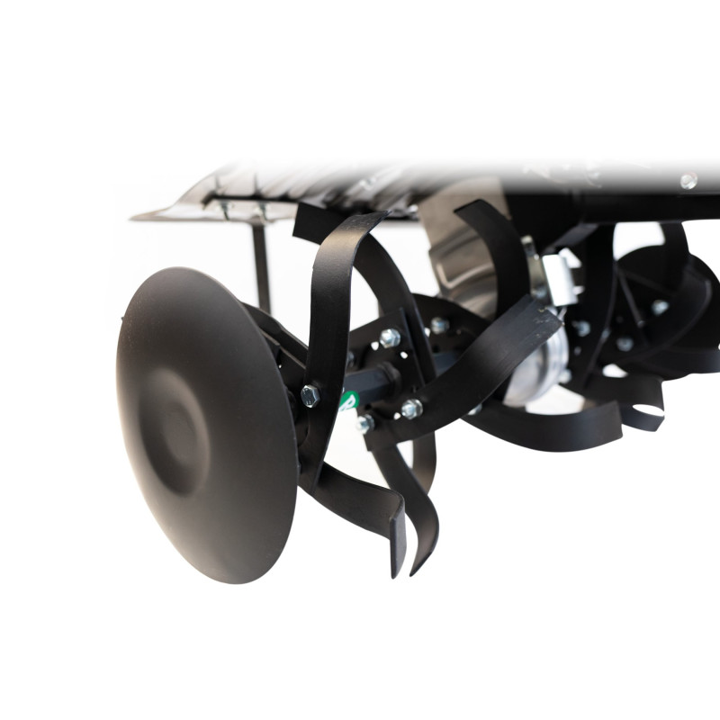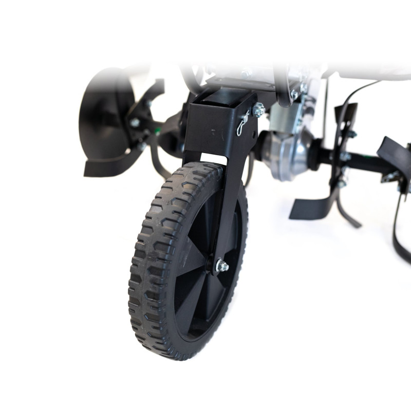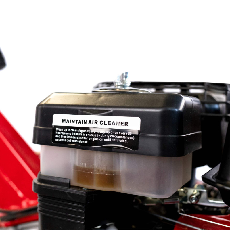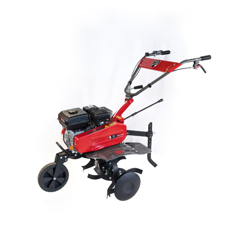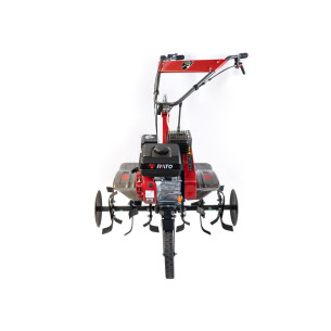 Ta glebogryzarka jest wyposażona w silnik benzynowy Rato R210 o pojemności 212 cm3, który może dostarczyć moc 4,4 kW przy 3600 obr./min, zapewniając skuteczną obróbkę nawet na twardych glebach. Bezpośredni układ przeniesienia napędu z przekładniami w kąpieli olejowej zapewnia większą odporność na naprężenia i zmniejsza potrzebę konserwacji w porównaniu z modelami z przekładnią pasową.