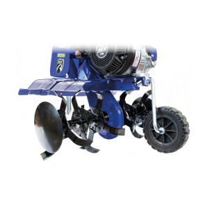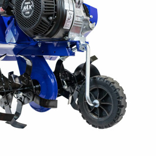 Mobilność i wygoda: Wbudowane koło transportowe ułatwia przemieszczanie glebogryzarki po posesji, a spalinowy silnik pozwala pracować w dowolnym miejscu, bez ograniczeń związanych z dostępem do prądu. Duży zbiornik paliwa o pojemności 3.9 litra zapewnia długi czas pracy bez konieczności częstego tankowania