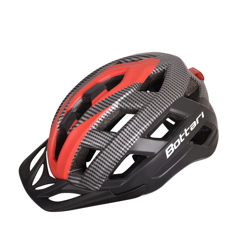 Kask rowerowy z tylnym oświetleniem w kolorze czarno-czerwonym