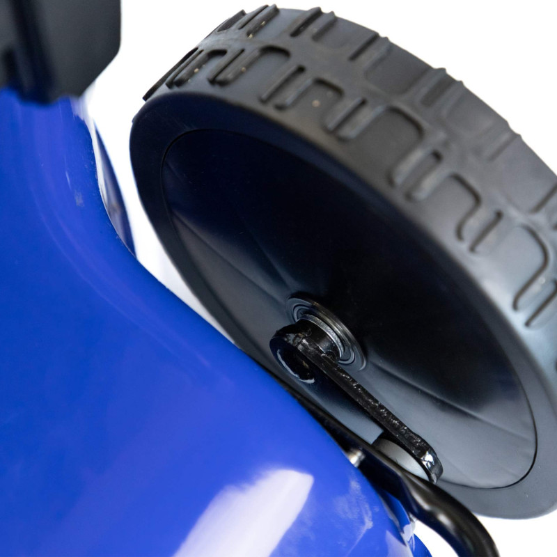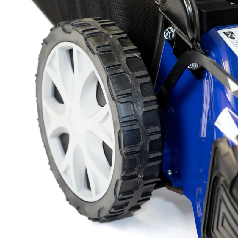 Duże, łożyskowane koła (przednie 20 cm, tylne 28 cm) zapewniają doskonałą stabilność i płynne prowadzenie kosiarki.