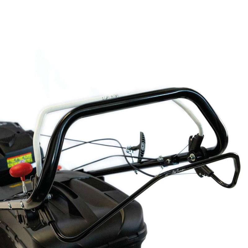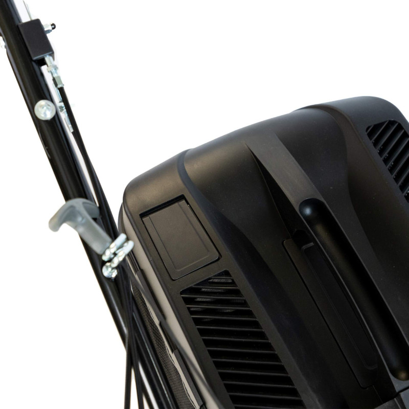 Trwała konstrukcja: Kosiarka została zbudowana na solidnym, stalowym korpusie, co gwarantuje jej wytrzymałość i odporność na uszkodzenia. Ergonomiczny uchwyt zwiększa komfort użytkowania.