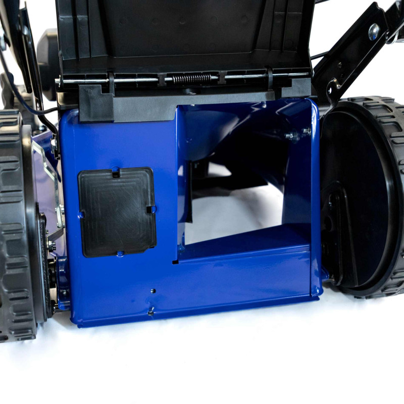 Wyrzut tylny: Przydatny do koszenia wyższej trawy na większych terenach, gdzie nie zależy Ci na natychmiastowym zbieraniu pokosu.
