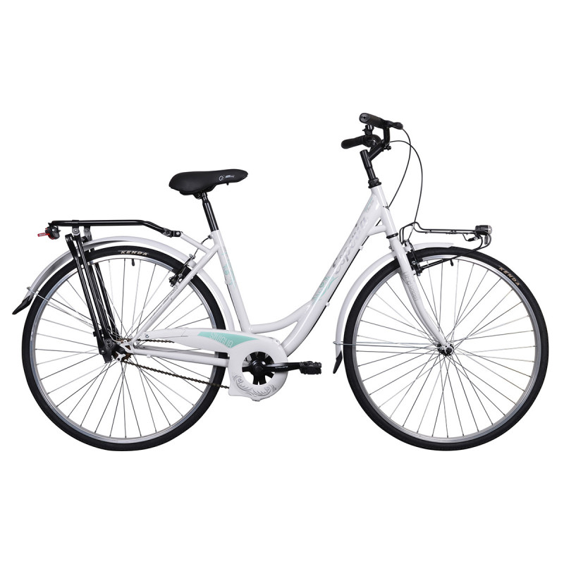 Wyposażony w lekkie, aluminiowe koła w rozmiarze 28” z oponami Kenda 700x35C, rower Esperia Siviglia oferuje płynne prowadzenie i świetną przyczepność. Skuteczne hamulce V-Brake gwarantują bezpieczeństwo, a bogate wyposażenie – błotniki, przedni i tylny bagażnik, osłona łańcucha oraz oświetlenie bateryjne z przodu i z tyłu – sprawiają, że rower jest gotowy do jazdy od razu po zakupie. To idealny towarzysz miejskich podróży, który łączy praktyczność z wyjątkowym designem.