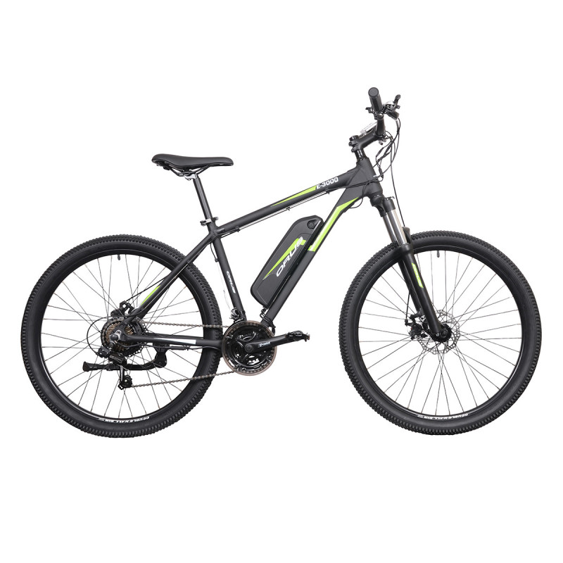 Rower elektryczny ORUS E3000 z aluminiową ramą 18”, silnikiem w tylnej piaście i baterią 10,4 Ah. Koła 27,5”, Przerzutki Shimano, 24 przełożenia, hamulce tarczowe. Idealny e-MTB do miasta i w teren.