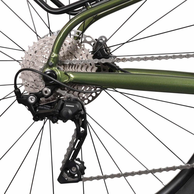 Za napęd odpowiadają komponenty Shimano GRX 2x10, a hydrauliczne hamulce tarczowe sprawią, że będziesz czuć się bezpiecznie niezależnie od terenu po którym się poruszasz.