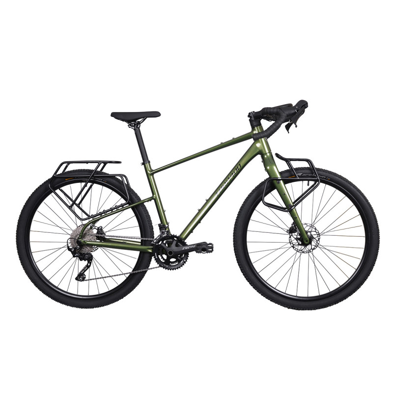 Za niezawodne przeniesienie mocy odpowiada napęd Shimano GRX 2x10, zaprojektowany specjalnie z myślą o gravelowych warunkach. Hydrauliczne hamulce tarczowe Shimano GRX zapewniają pełną kontrolę i bezpieczne zatrzymywanie nawet podczas zjazdów z obciążeniem. Model Prydon Expedition wyposażono w przedni i tylny bagażnik, a kierownica z dodatkowym miejscem na montaż akcesoriów pozwala na personalizację sprzętu pod każdą wyprawę – od lekkich wycieczek po wielodniowe ekspedycje.