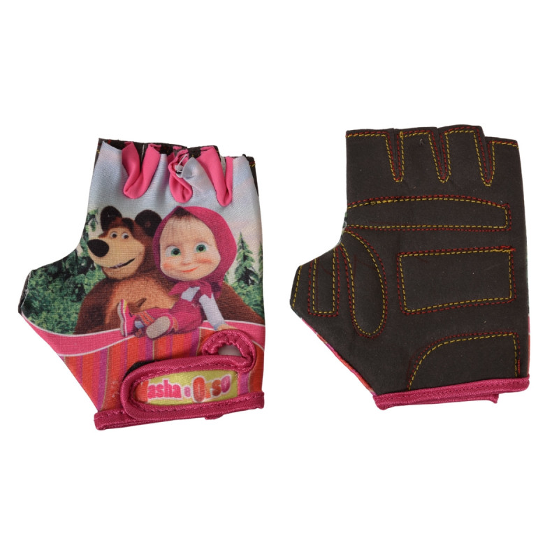 Rękawiczki rowerowe MASZA i NIEDŹWIEDŹ dla dzieci. Wykonane z poliestru i elastanu, w rozmiarze M, zapinane na rzep. Zapewniają wygodę, dobrą przyczepność i ochronę dłoni podczas jazdy.