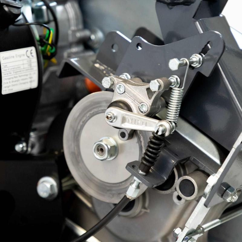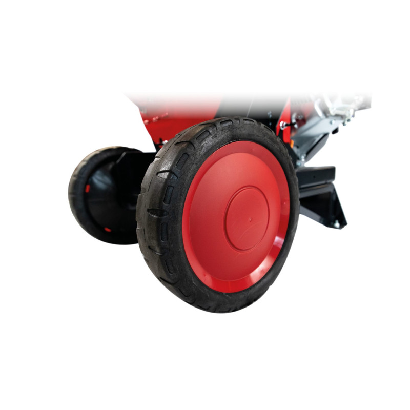 Swoboda pracy bez ograniczeń: Zasilanie spalinowe oznacza, że możesz pracować w dowolnym miejscu — w ogrodzie, na działce, w lesie — bez konieczności dostępu do prądu. Duże, łożyskowane koła transportowe i waga 115 kg sprawiają, że, mimo solidnej konstrukcji, rozdrabniacz jest mobilny i łatwy do przemieszczania po terenie.